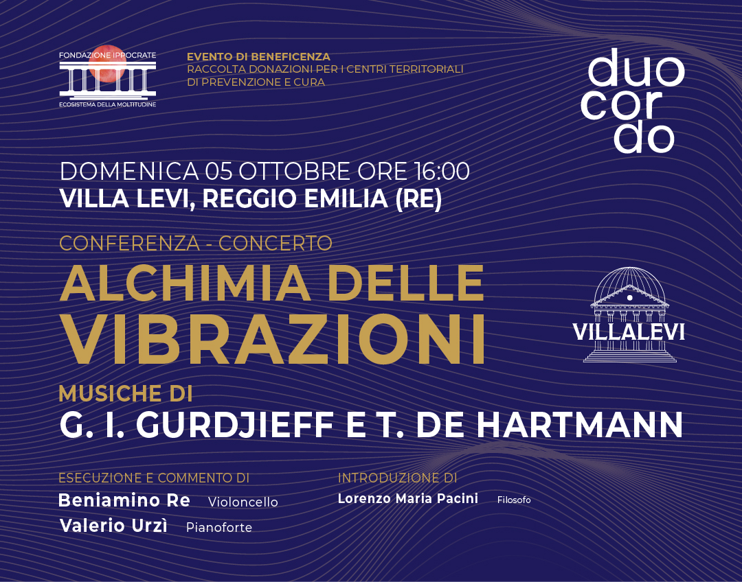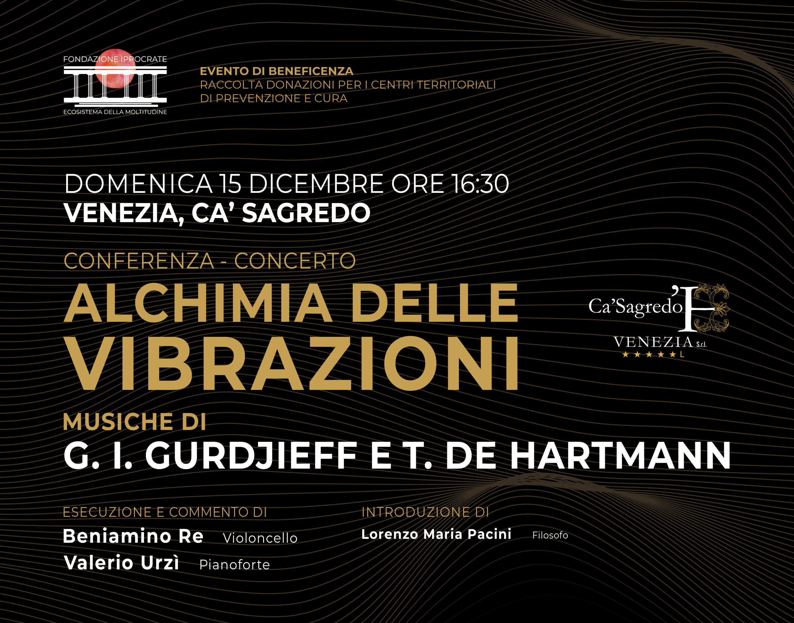 Due anni dopo, in occasione del convegno nazionale della fondazione IppocrateOrg a Bagnoli di Sopra (Pd), Beniamino propone di portare al pubblico una versione ridotta dei brani arrangiati per pianoforte e violoncello. L’entusiasmo con il quale vengono accolti dà il via al progetto intitolato “Alchimia delle Vibrazioni”: il 15 dicembre 2024 il Ca’ Sagredo Hotel riapre le porte per ospitare la nuova versione delle conferenza-concerto, questa volta sostenuta dalla fondazione IppocrateOrg, presentata da Lorenzo Maria Pacini, e ripresa del regista Thomas Torelli di Uam TV.